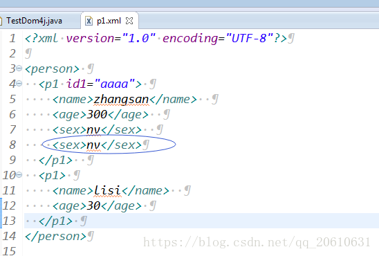 //修改第一个p1下面的age元素的值 <age>30</age>