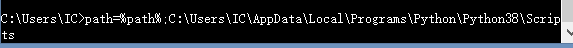 最后,加入环境变量,先回到原始位置,然后输入:path=%path%:C:\Users\IC\AppData\Local\Programs\Python\Python38\Scripts![]()