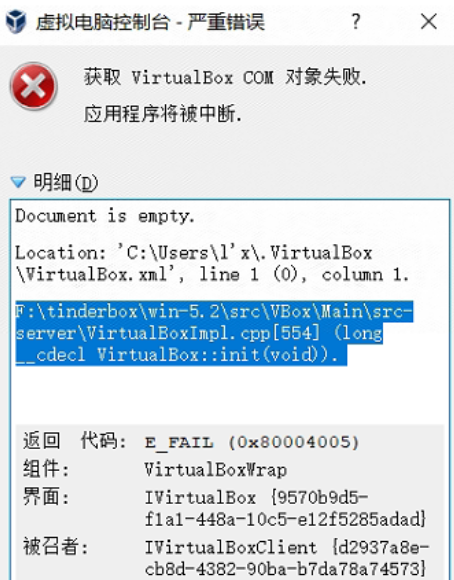 解决方法:在确定没用其他问题的情况下,我们需要进入到提示的目录 比如这里就是C:\user\XXX\.virtualbox 目录下手动删除virtualbox.xml文件即可。然后重新打开Vbox就不会报错了!