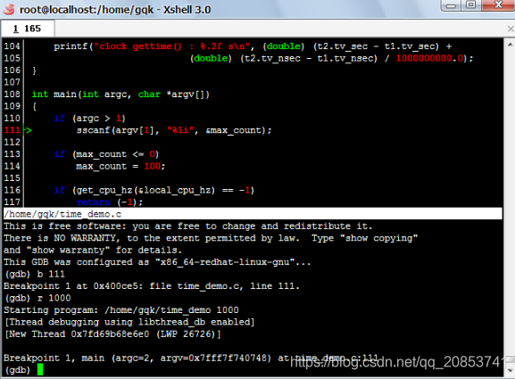 [root@localhost gqk]# cgdb ./time_demo