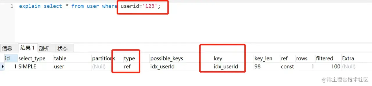select * from user where userid =123;