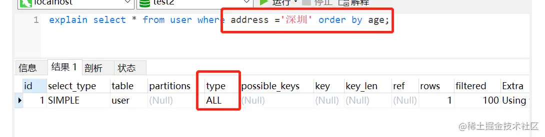 select * from user where address ='深圳' order by age ;
