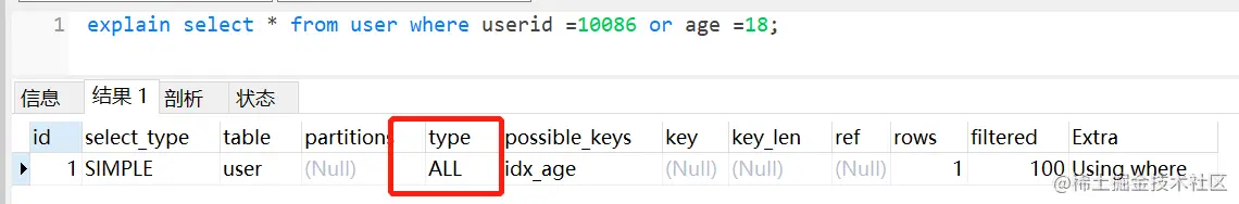 - 使用 where,并且 where 条件中必须有索引列;