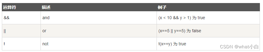 逻辑运算符用于测定变量或值之间的逻辑。