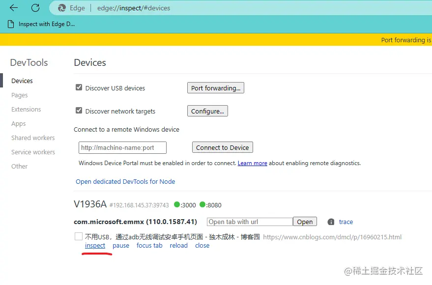 edge://inspect/#devices