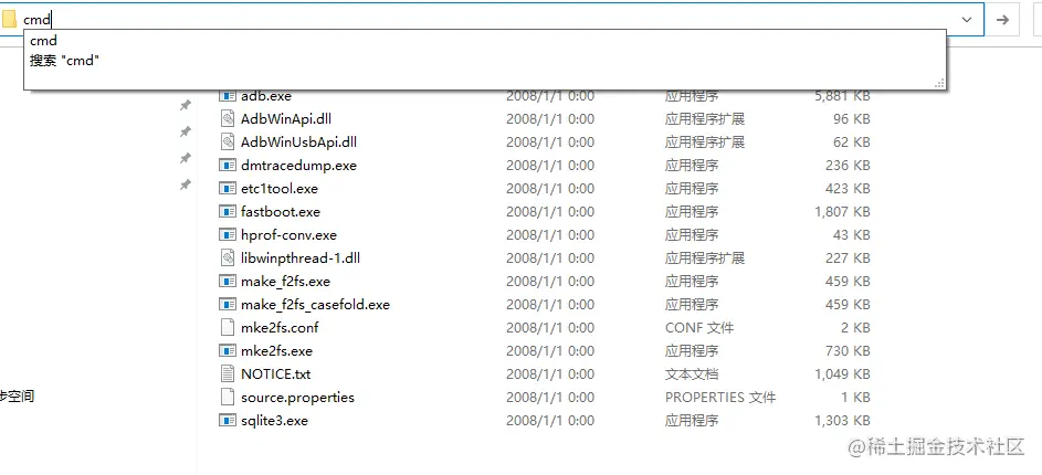 - 下载完解压后,在目录地址输入 cmd,打开命令行窗口
