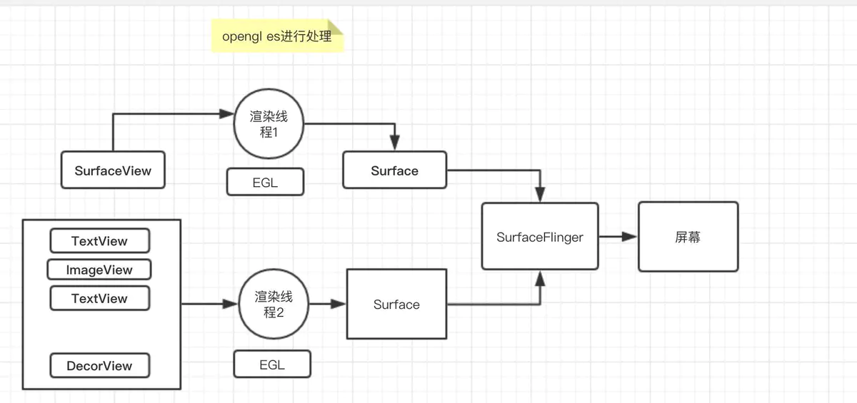 2、SurfaceView和TextureView实现opengl es环境流程其实大体一样,至于他们效率上的区别这里就不做讨论了,因为笔者也没有认真去研究。后面研究透了在单独来写