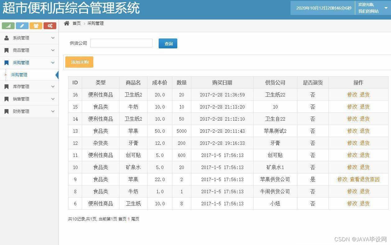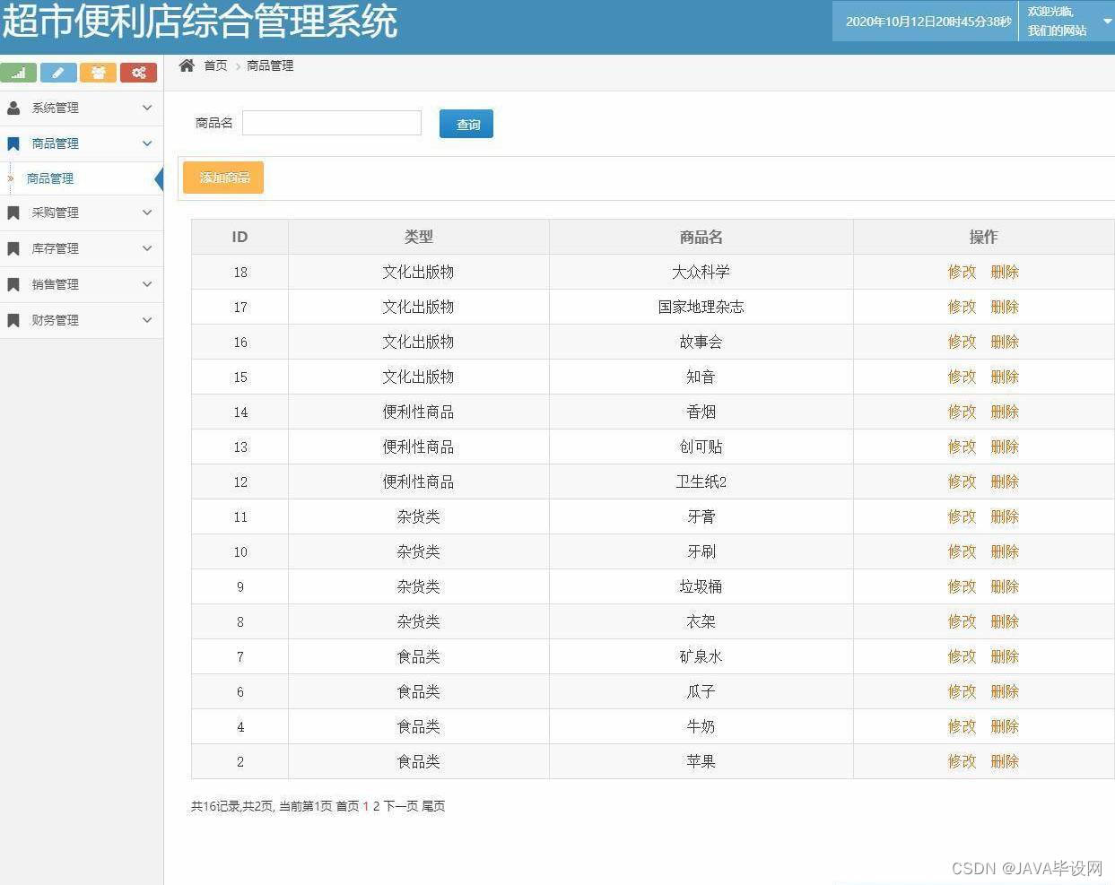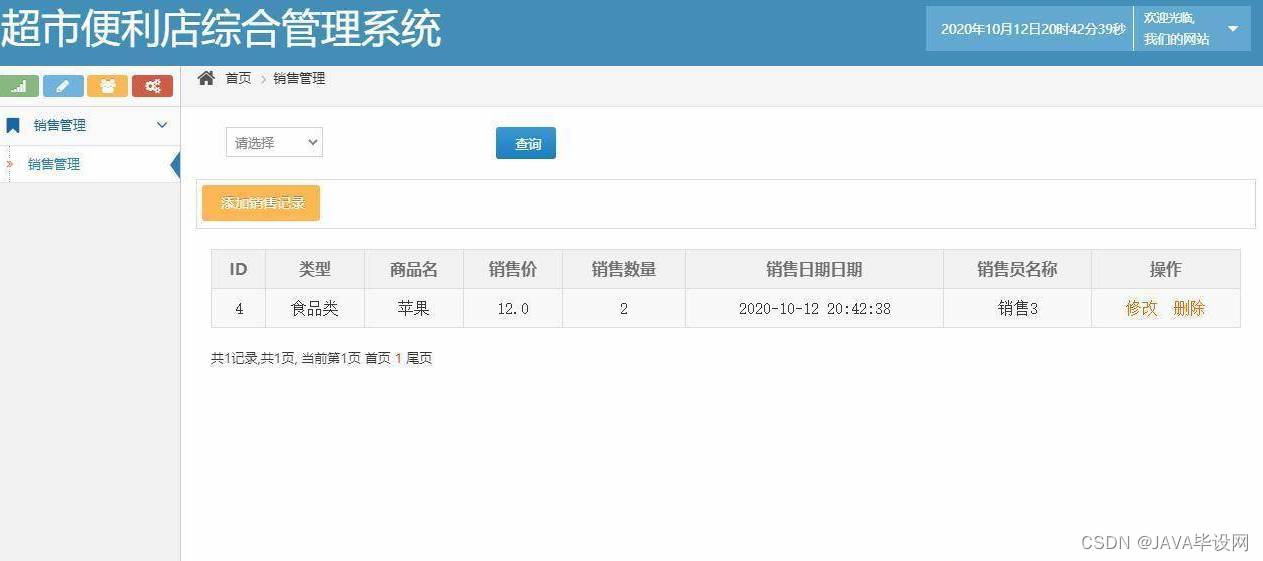 管理员角色登录,销售员管理,商品管理,采购管理,库存管理,销售记录管理,成本报表统计,收入报表统计,利润报表统计等功能。