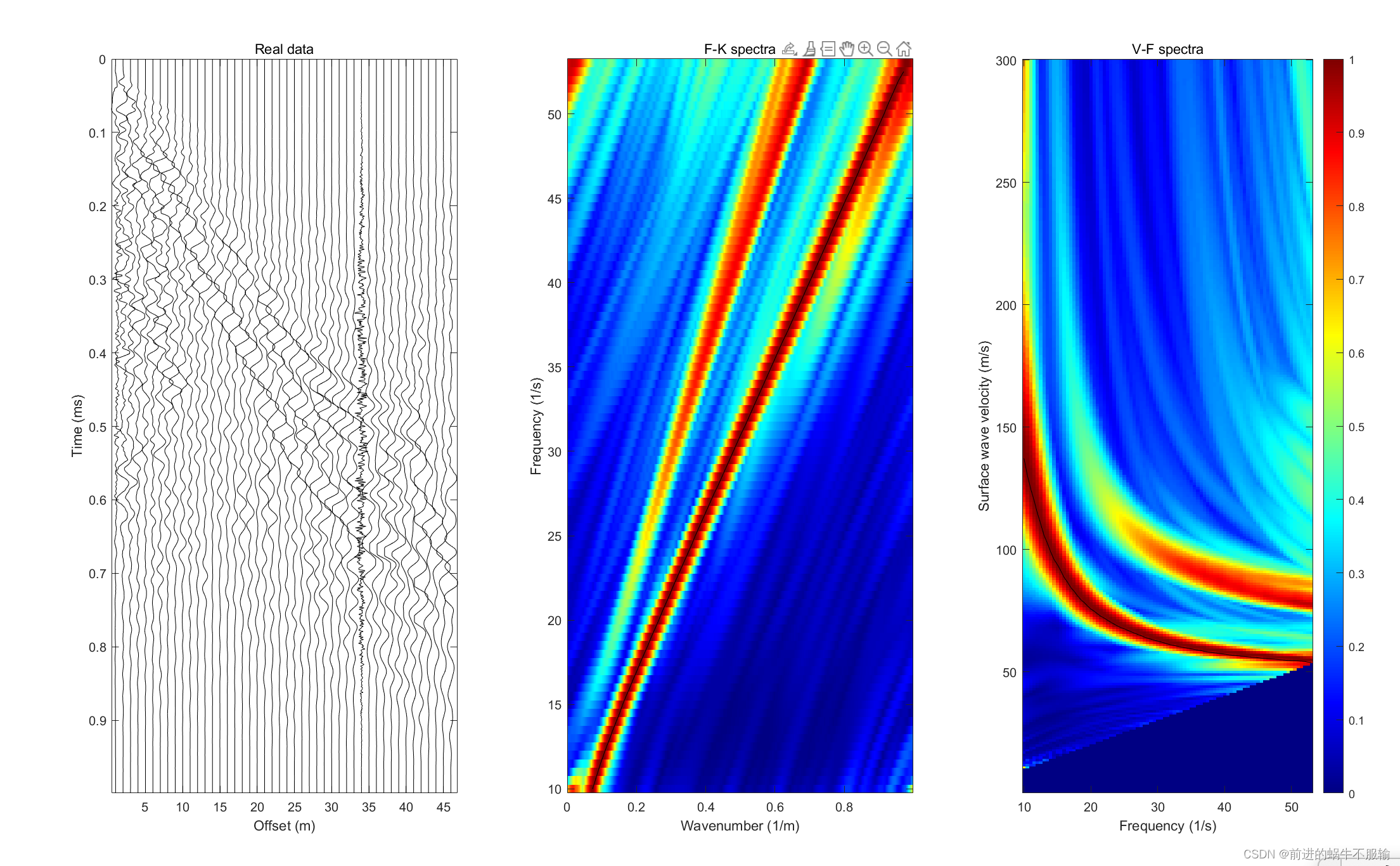 下面是加入了滤波效果,面波能量的聚集效果改善了很多: