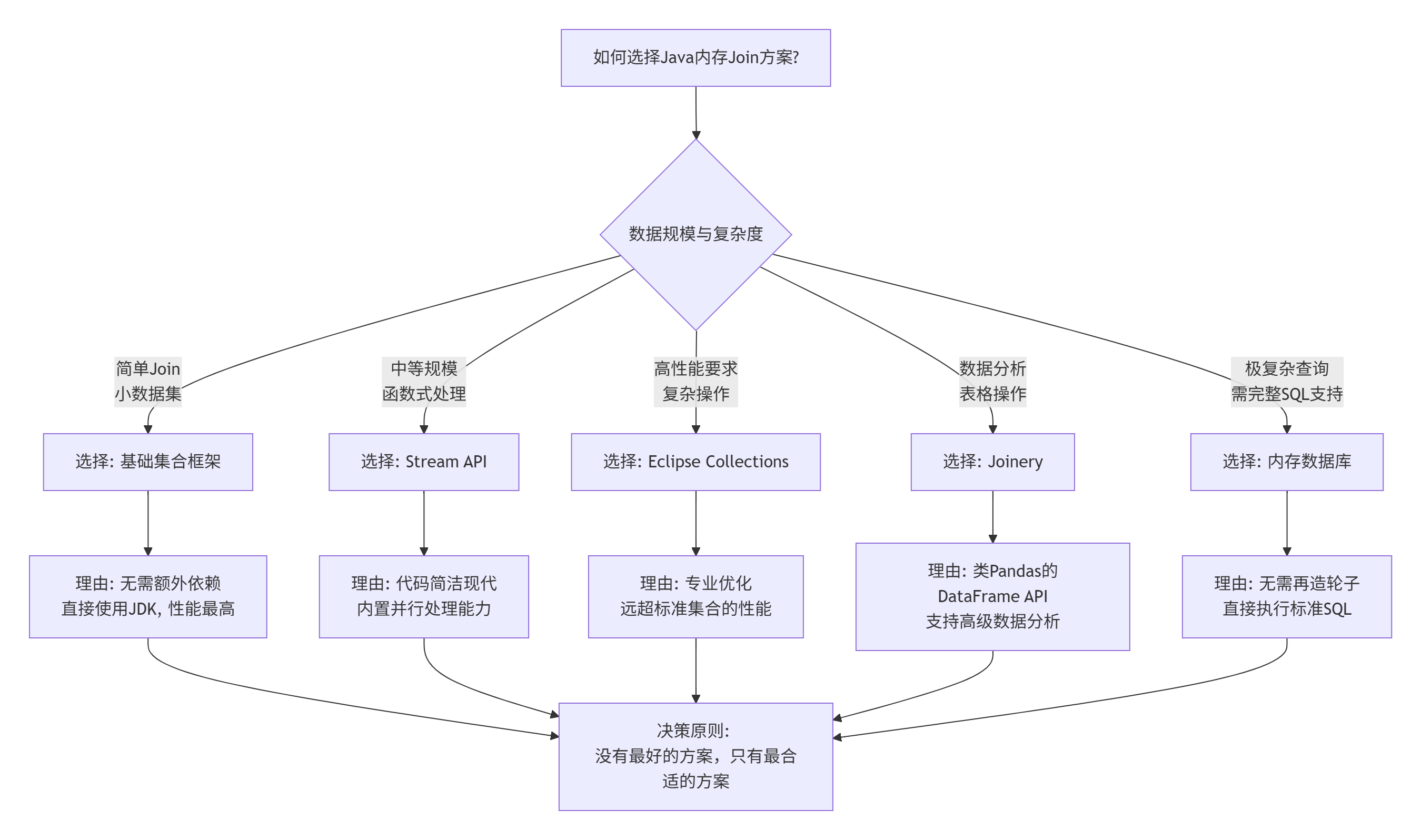 Java 提供了多种强大的内存 Join 实现方式,每种方案都有其独特的优势和适用场景。选择哪种方案取决于具体的需求: