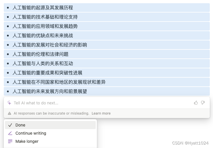 现在也已经有了很多 AI 的写作工具,但是在实际的写作上,我倒是并不依赖 AI 来产出内容。不过,在没有灵感的时候,让 AI 帮助我头脑风暴一下还是很有帮助的。当我围绕一个主题想要写点新内容的时候,我往往可以通过 notion.ai 来寻找灵感。虽然它的很多主意了无新意,但也会有很多时候给出我没有思考过的角度。