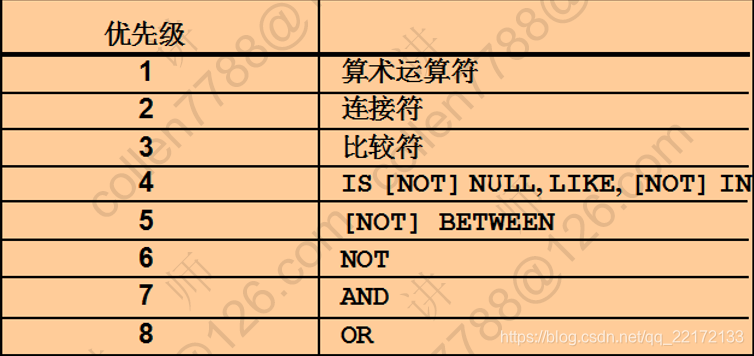 Oracle中常见的运算符如下: