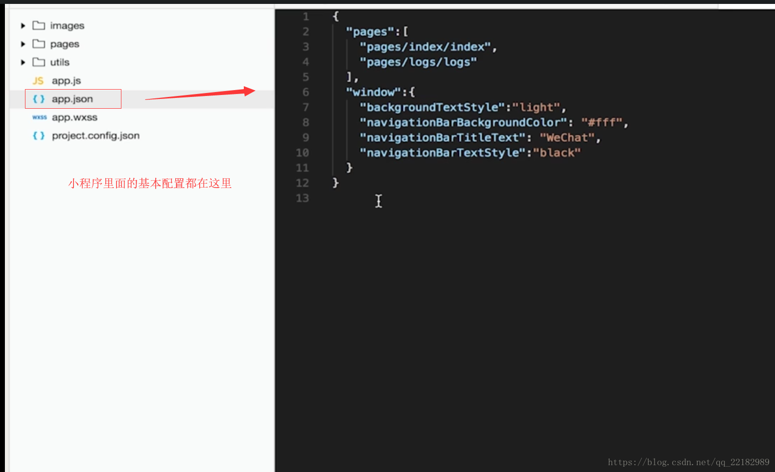 小程序的基本配置,pages是路由(某一模块对应的路径)。Windows是为整个小程序框架的设置。
