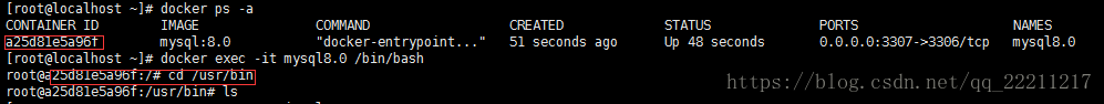 备注:exec docker进入容器命令 -it 容器中服务别名 /bin/bash 表示命令行模式 与 -d 后台守护进行模式启动 形成两种运行方式