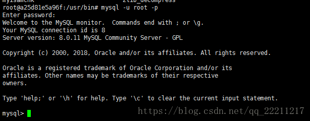 备注: 在容器中进入用户目录启动mysql 输入密码连接成功