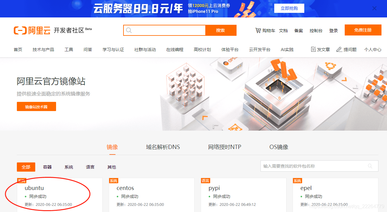 阿里源地址:https://developer.aliyun.com/mirror/