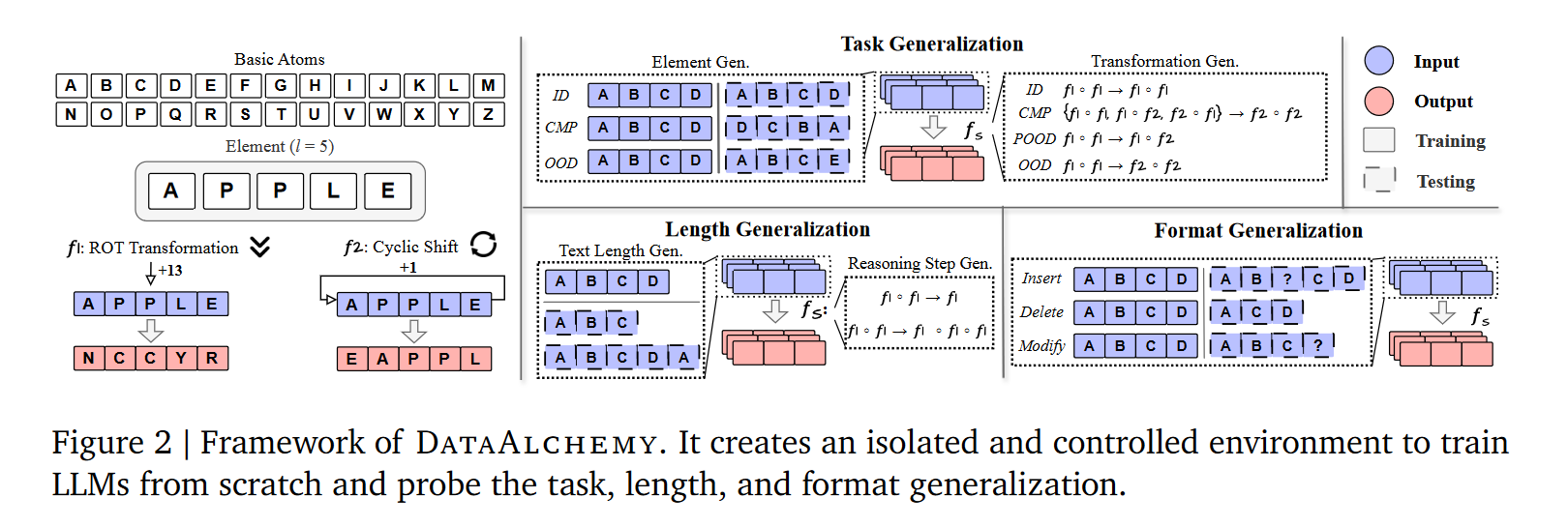 为验证假设,构建了可控的实验框架DataAlchemy,可从零训练LLM,并从三个维度系统测试CoT的泛化能力: