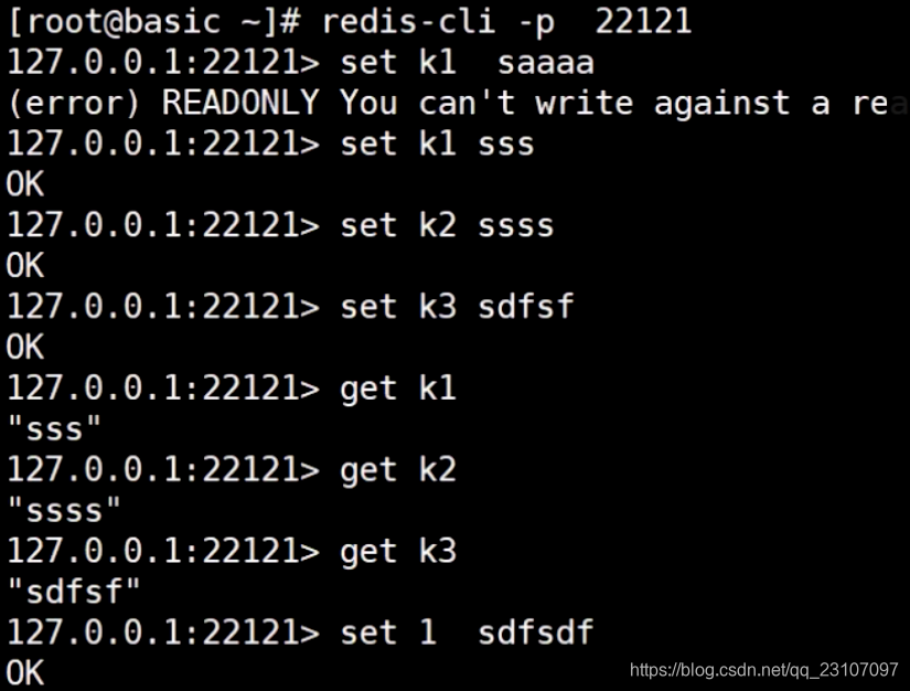 启动22121 的代理端口,进行数据的操作,会分别打到两台被代理的机器中;
