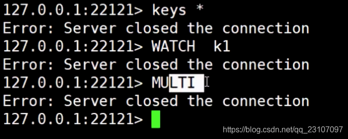 注意set 后不同的key 值路由到不同的主实例上;根据key 值来计算槽位;执行watch 是可支持的,但是执行事务的时候就报错了;就是因为从一台路由到另一台的时候,执行事务的那台没有缓存命令队列;
