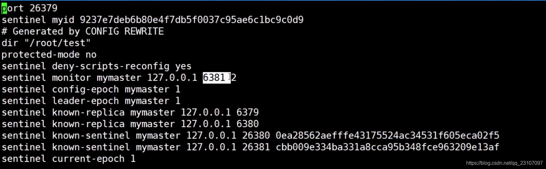 更改完主机器之后,实例26379 的配置文件会相应的发生变化,如下:
