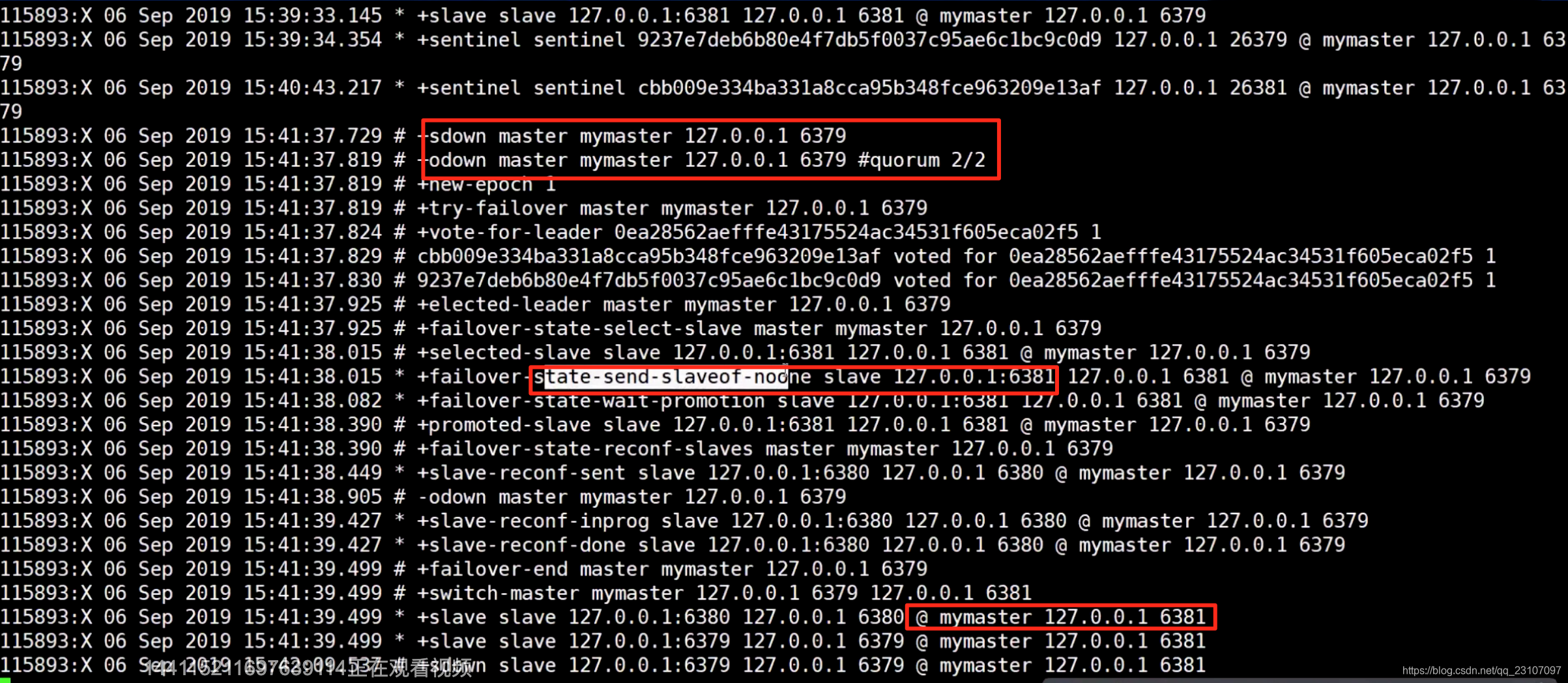 当主机6379 挂掉,哨兵之间可以发起投票,选出6381