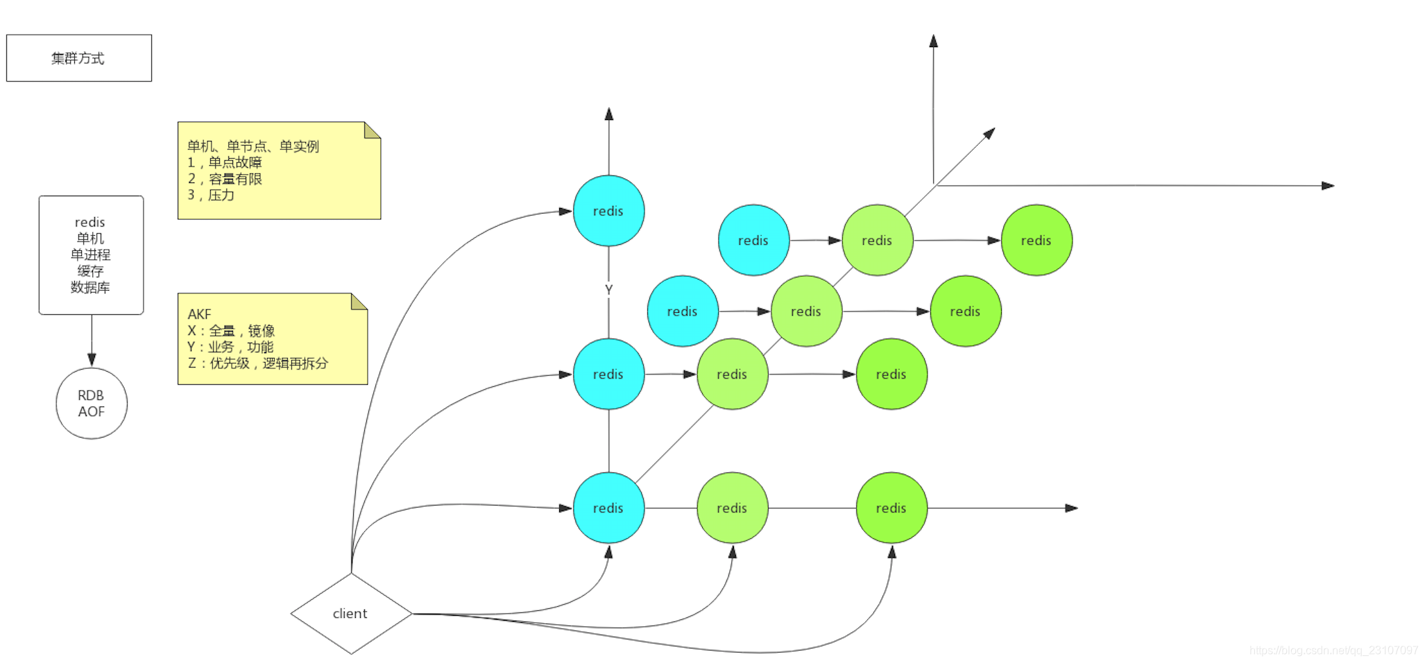 单机会有3个问题,通过AFK 来进行集群维度的划分,来解决相应的问题;比如x 主备 划分解决单点故障等;
