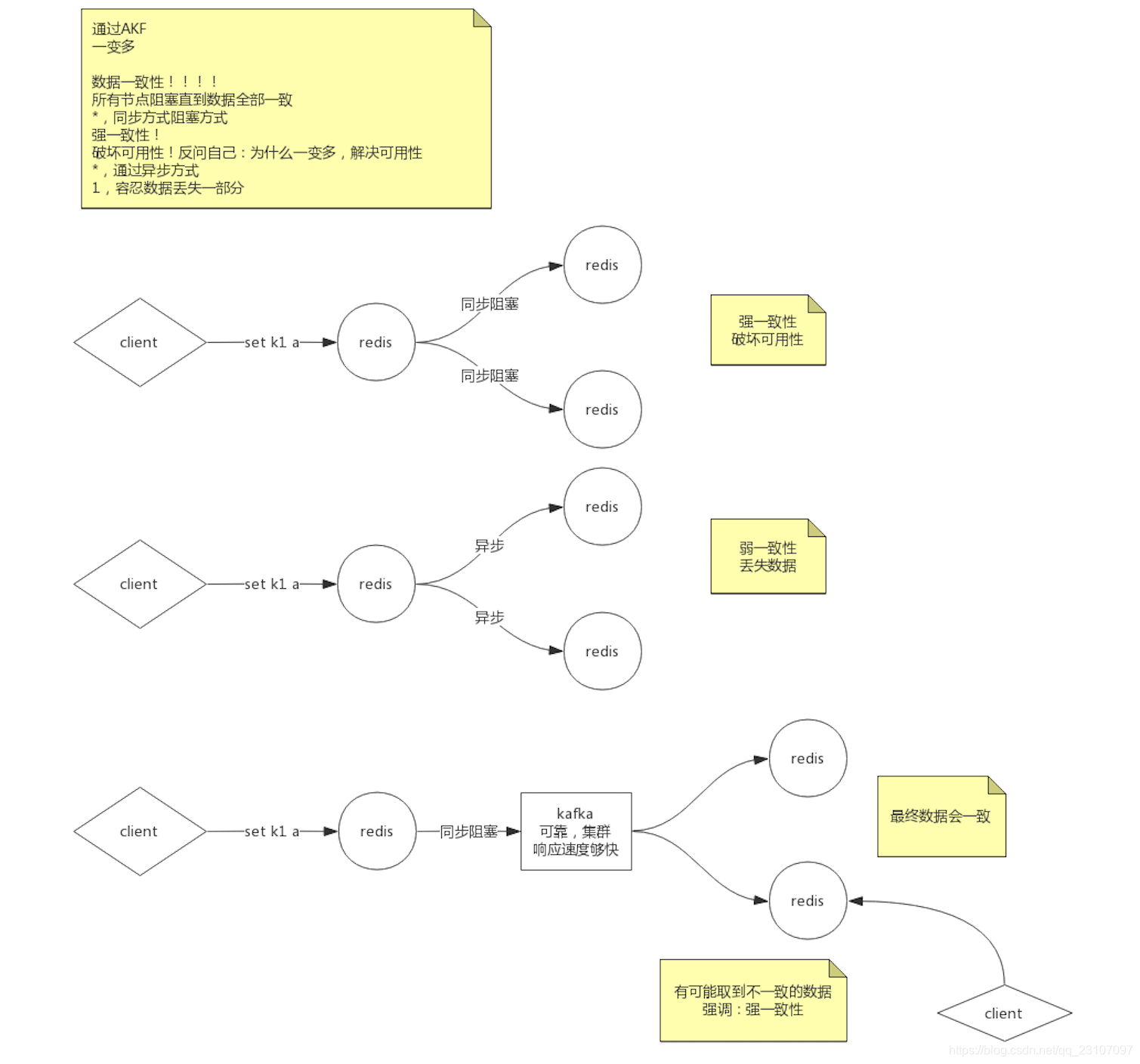 AFK 会引起一些问题,比如数据的一致性,不同程度的一致性,会有不同的问题;可以通过以上的方式进行解决,最终异步kafka 等方式;
