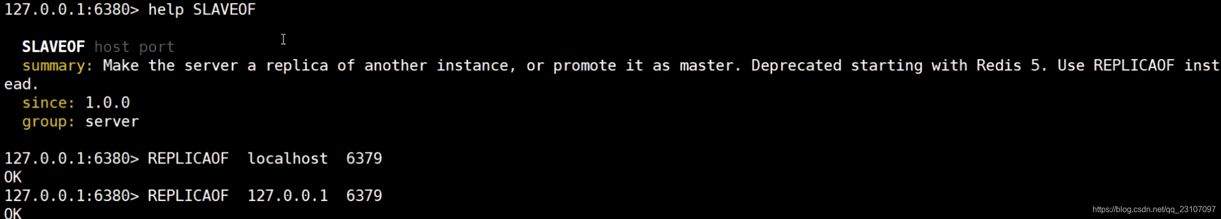 在启动的实例中,追随6379,作为从属机器;这个是手动追随;