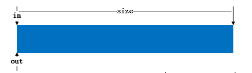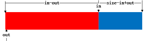 这里使用 8 位无符号整数来保存 in 和 out ,方便溢出。这里假设 out = 100,in = 255,size = 256,如下图: