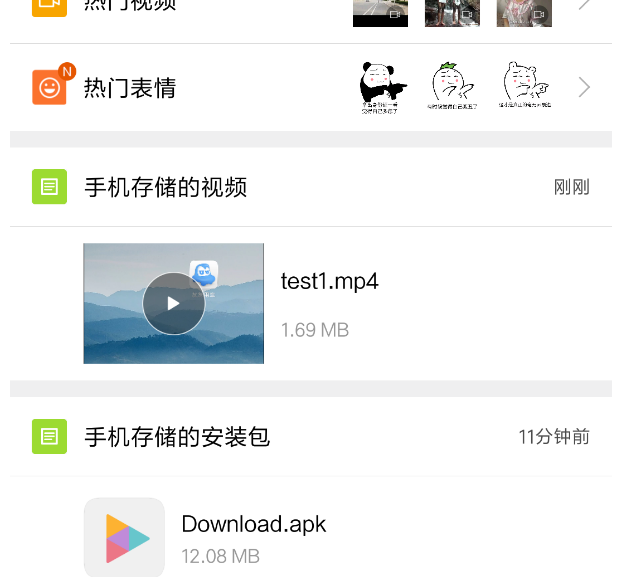 然后我们在手机的sd卡根目录就出现了一个名称为test1.mp4的视频文件。