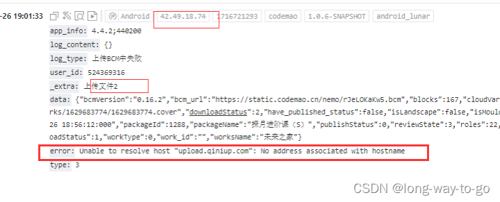 最近公司的app有很多用户反馈上传文件失败了。业务路径就是简单的app前端调用后端文件上传接口,所以发生上传失败的可能因素可能是:1、文件大小/文件类型等是否有问题,公司用的是七牛的文件服务器,对文件上传大小和类型一般有限制,不符合规则的话会上传失败。2、公司后端的上传接口是封住了七牛那边推荐的接口upload.qiniu.com,所以业务层封装接口的域名可能会被dns解析失败导致上传失败。3、文件数据传输过程中的有故障点或网络拥塞位置,通过tracert/traceroute排查。4、网速不行,上传超时。5、反馈到七牛云让那边的技术协助排查。