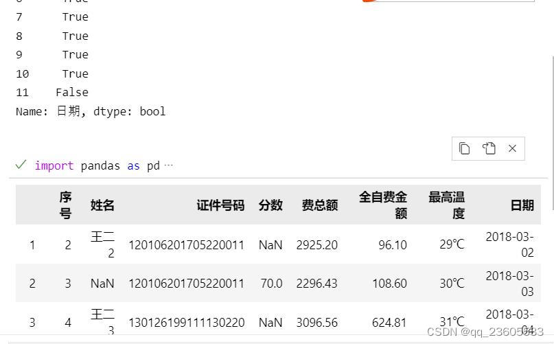 【pandas之数据清洗和处理和空值处理】 提示:文章写完后,目录可以自动生成,如何生成可参考右边的帮助文档文章目录前言一、Pandas对缺失值的处理二、使用步骤0.数据处理1.空值处理2.删除全是空值的行和列3.填充空值3.补全姓名4.保存数据总结前言提示:这里可以添加本文要记录的大概内容:待处理表格提示:以下是本篇文章正文内容,下面案例可供参考一、Pandas对缺失值的处理Pandas使用这些函数处理缺失值:1、·isnull和notnull:检测是否是空值,可用于df和series·2、dropna:丢弃、删除缺失值.