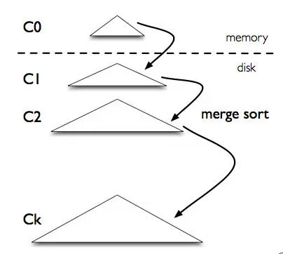 - 第四步,重复第三步,直到遍历完 C0 树和 C1 树的所有叶子节点,并将所有的归并结果写入到磁盘。这个时候,我们就可以同时删除 C0 树和 C1 树中被处理过的叶子节点。