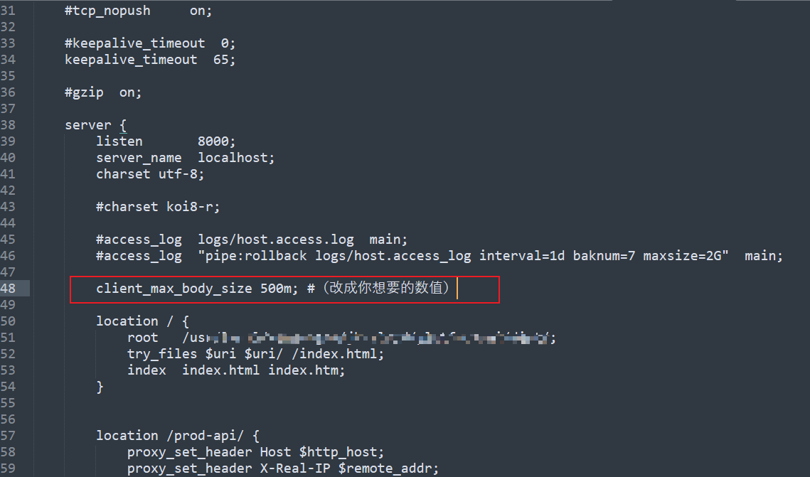 client_max_body_size 10m; #(改成你想要的数值)
