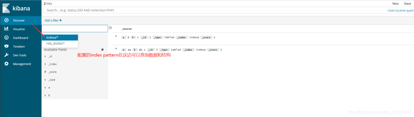 6.3 Discover(查看6.1新建index pattern 的结构、数据)