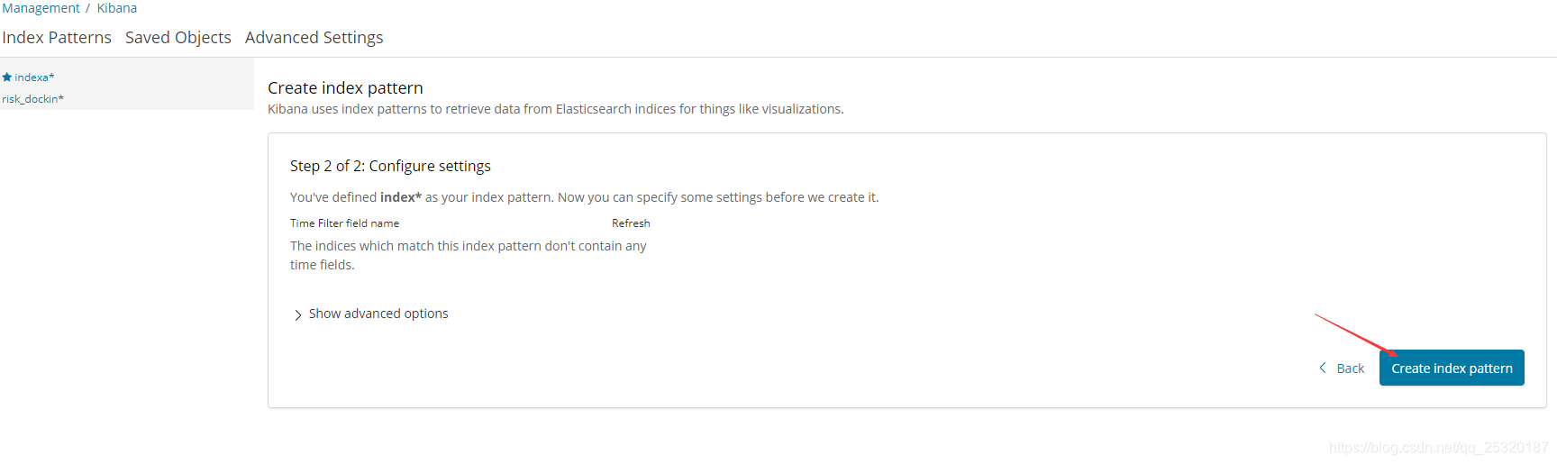 6.1、配置index pattern(配置indexpattern之前需要在es中先建索引)