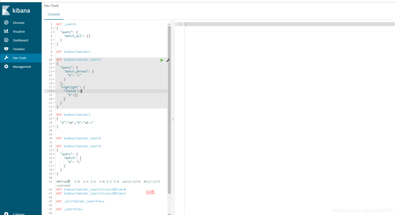 6.2、Dev Tools(操作ES,使用es的语法,可参考官方文档https://www.elastic.co/guide/cn/elasticsearch/guide/current/getting-started.html)