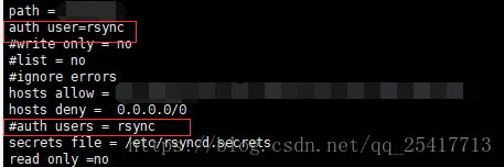 #vim /etc/rsyncd/rsyncd.secrets //编辑rsyncd.secrets文件