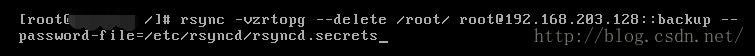 rsync –avzP –delete 配置文件中的authusers @ip地址::模块名–password-file=/etc/rsyncd.secrets