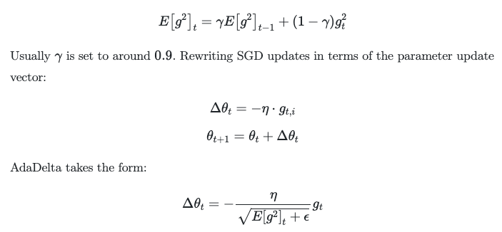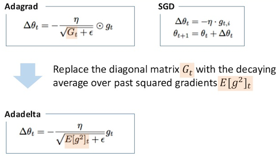 Gradient Descent Stochastic Gradient Descent, SGD Mini-Batch Stochastic Gradient Descent, MB-SGD SGD with Momentum Nesterov Accelerated Gradient, NAG Adaptive Gradient, AdaGrad AdaDelta RMSprop Adam