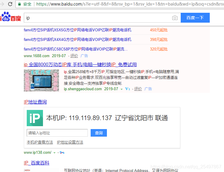 如果是windows 可以在百度中查询ip