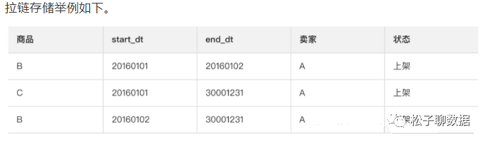 拉链存储通过新增两个时间戳字段(start_dt和end_dt),将所有以天为粒度的变更数据都记录下来,通常分区字段也是这两个时间戳字段。
