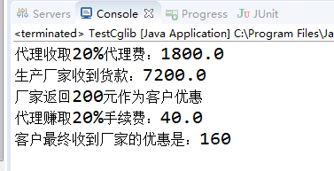 System.out.println("代理收取20%代理费:"+money * 0.2);