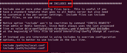 类似于struts2,可以将配置文件分开配置,用include包含进来,也可以在一个主机上多个redis之间使用同一份配置文件,而同时各个实例又拥有自己的特定配置文件,截图: