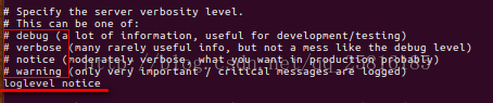 loglevel notice:redis日志级别,分别为debug,verbose,notice,warning,级别依次增高,截图: