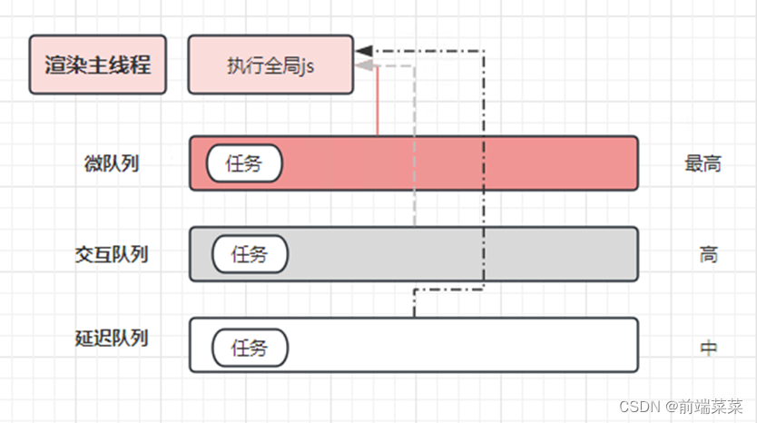 过程: 渲染主线程开始时循环状态,每次都去任务队列查看是否有任务,有任务的话就进入主线程,没有进入休眠状态。