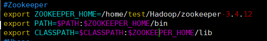 export ZOOKEEPER_HOME=/home/test/Hadoop/zookeeper-3.4.12