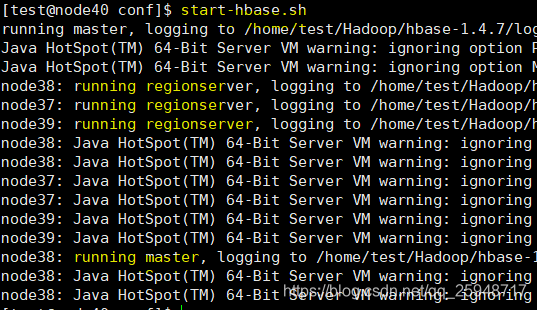 我的方案设计是:node40是HMaster,node38是Hmaster-back,node37-node39都是slaves。